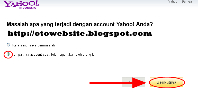 5.Selanjutnya sobat akan di bawa ke halaman permasalahan account yahoo.
